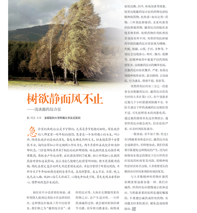 树欲静而风不止——浅谈撤药综合征