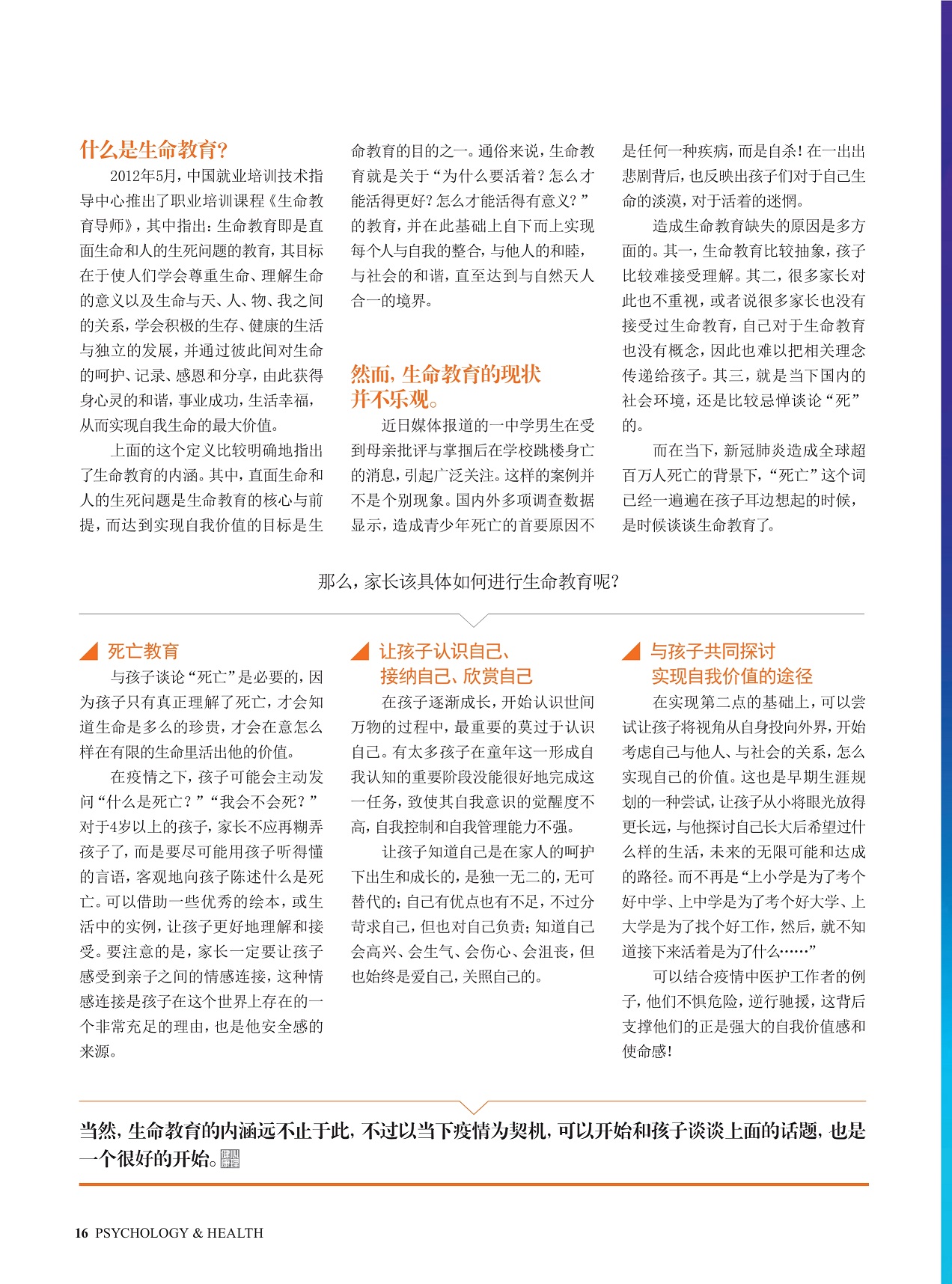疫情之下是进行生命教育的好时机