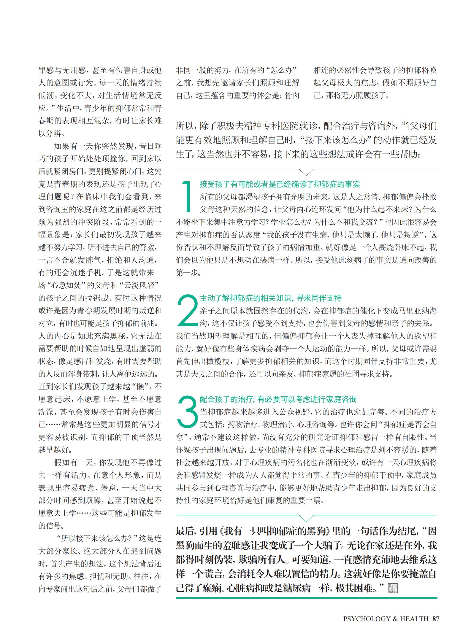 致抑郁青少年父母的一封信