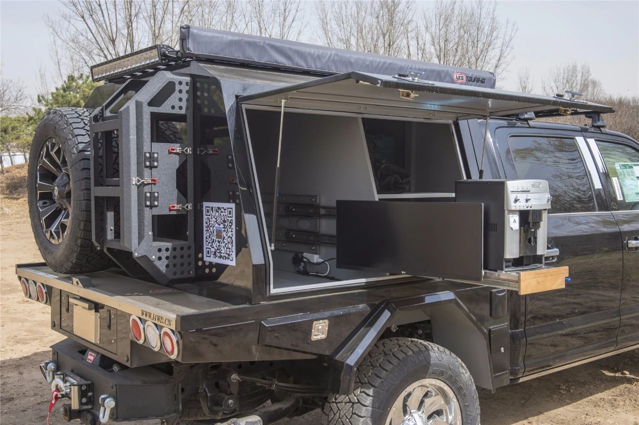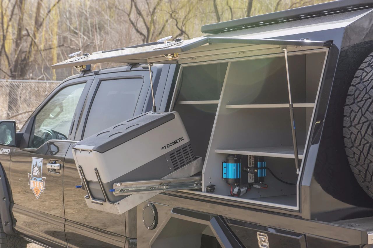 整车采用澳洲探险改装风格,以宽敞的储物与科学的间隔为亮点,无论是户外垂钓用具、户外锅碗瓢盆,又或者是发电机、气泵、电焊机、户外急救包、抢修工具等等都可以装下。