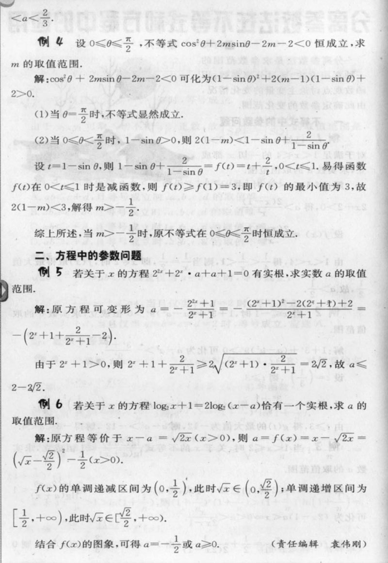 分离参数法在不等式和方程中的应用