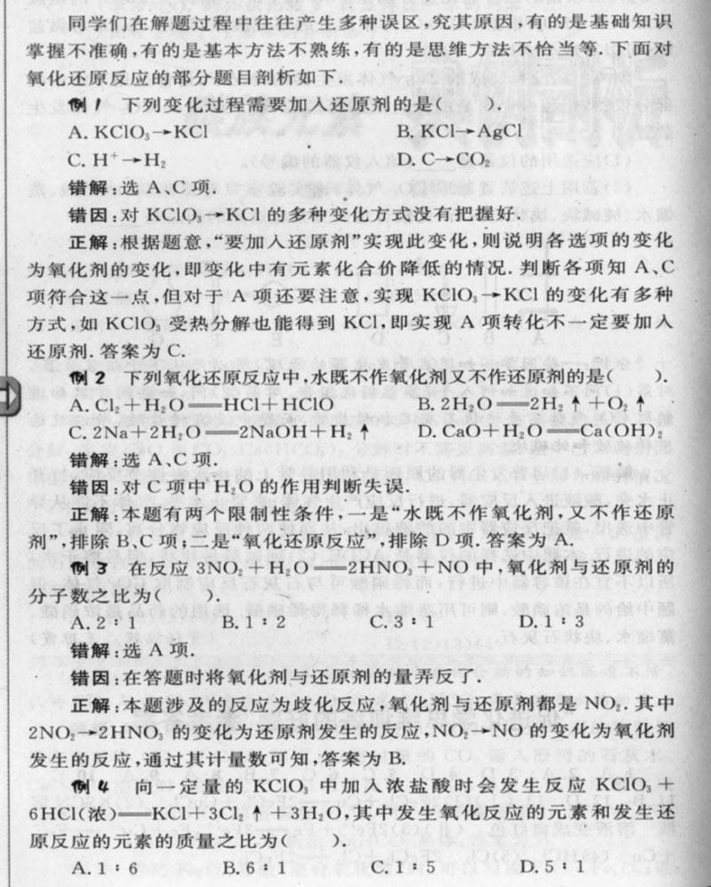 例析氧化还原反应典型易错题