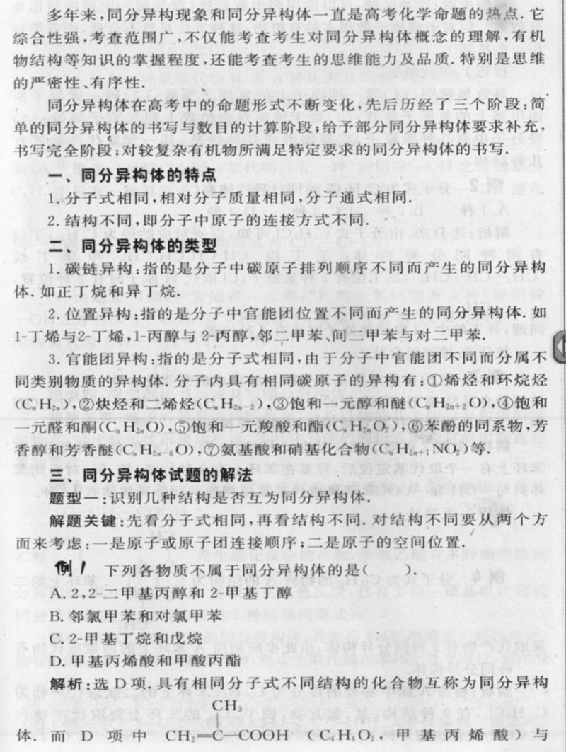同分异构体考点解析
