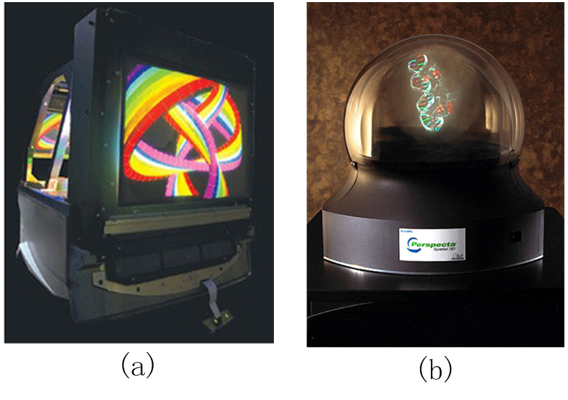 图10 体显示设备(a)DepthCube 3D显示器(b)Perspecta 3D显示器