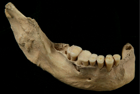 (田园洞人下颌骨化石 供图 中科院古脊椎动物与古人类研究所)