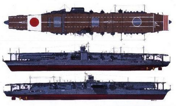 一个月后,中途岛战役打响,日本联合舰队再次与美军舰队正面交锋,南云忠一指挥的机动编队下辖赤城号、加贺号、苍龙号和飞龙号4艘航母,迎战美军第16、17特混编队3艘航母。日本海军几乎倾巢出动,舰队规模空前,展示了日本海军对航母集群式作战的痴迷。舰队指挥官山本五十六试图利用航母编队的远程打击能力攻击中途岛,试图与美军太平洋舰队决战,最终夺取中途岛。联合舰队中的加贺号、赤城号都属于满载排水量达到4万吨以上的航空母舰,舰载机近百架,是日本帝国海军中最具战斗力的航母之一,也是日本航母建造技术的顶尖之作。袭击珍珠港和中途岛海战中,日本海军对航空母舰的运用已经达到顶峰,这种海战兵器作为舰队主力的地位逐渐稳固。