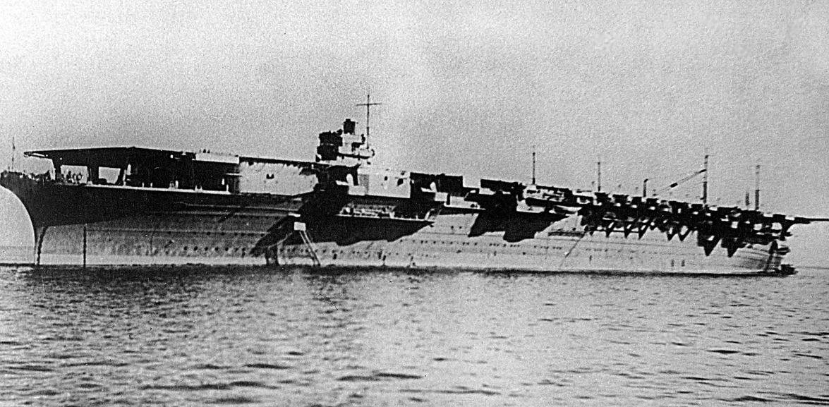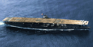 在太平洋战争期间,日本海军对大中型航母仍然恋恋不忘,1941年7月在川崎重工神户造船厂开工建造了“大凤”号航母,排水量3.7万吨,舰载机60架左右。“大凤”号的建造代表着日本航母设计已经进入了新的阶段,除了保持舰载机数量外,还特别增强了航母的抗打击能力,甲板可抵御500公斤炸弹的打击,烟囱和舰桥为一体化设计。防空方面使用了100毫米高炮和22座25毫米口径火炮,火力是日系航母中首屈一指的。