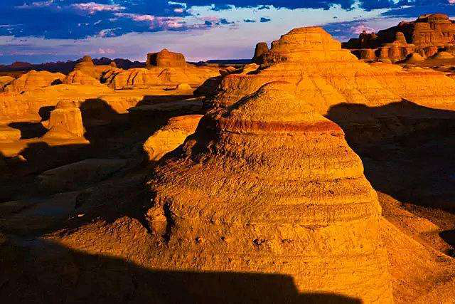 在白天,雅丹地貌以其瑰丽雄壮的天使般姿态另世人神往,而到了夜晚,又以其鬼魅般气氛令人毛骨悚然。雅丹地貌,集天使和魔鬼于一体,变幻莫测的形态是大自然对我们的馈赠。