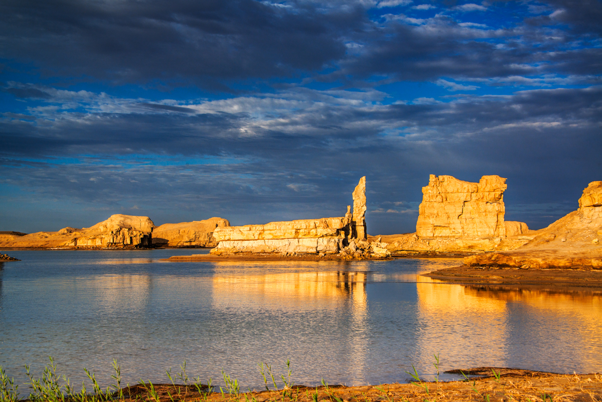 戈壁滩上的碧玉:水上雅丹