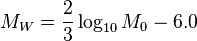 矩震级是记录地震强度的标度。1977年由美国加州理工学院的地震学家金森博雄教授制定。计算公式为: