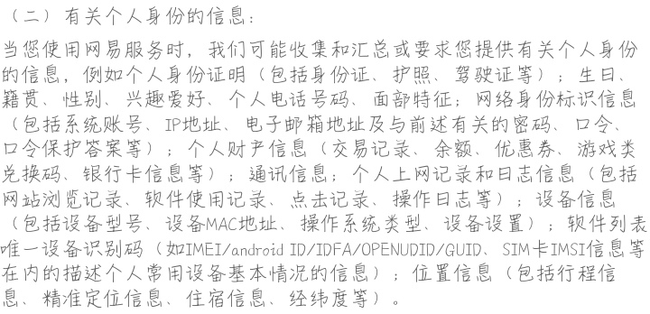 网易的游戏许可及服务协议则显得非常不友好。过小的字体,灰色和红色的字,糟糕的排版,即使是弹出来恐怕也不会有人愿意去看。基本的内容与腾讯大同小异,网易的隐私政策将获取信息的途径和内容解释得更加清楚。