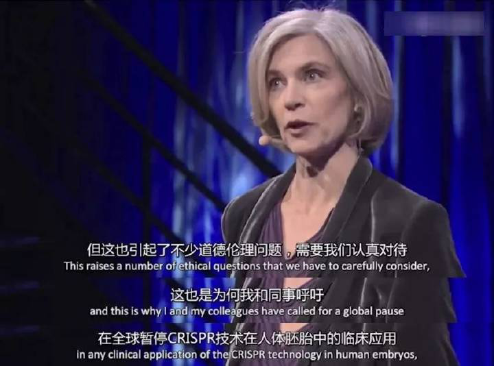 (图为CRISPR-cas9基因编辑技术创始人Jennifer Doudna演讲)