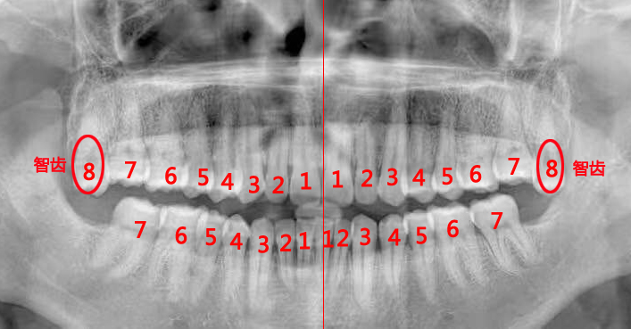 最简单的方法:对着镜子,从一侧的门牙开始往后数,第8颗就是智齿。