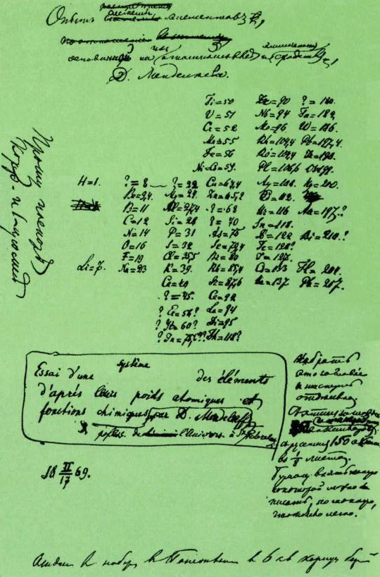 图2 1969年门捷列夫绘制的元素周期表手稿