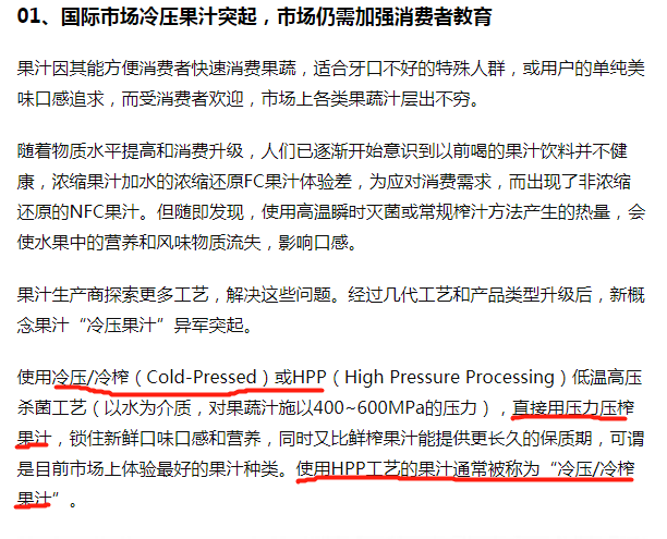 不得不说,文章分析得很好,可惜基本概念全错了。不知有多少读者还在混淆“冷压/冷榨”与“HPP”呢?