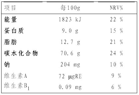注:根据相关规定,每种食品的外包装上都必须标注“营养成分表”。其包括5个基本要素:表头、营养成分名称、含量、NRV%和方框,其中,NRV%是指能量或营养成分含量占相应营养素参考值(NRV)的百分比。