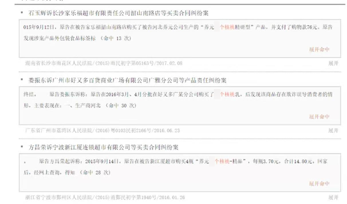 事实上,张先生并非第一个状告“某个核桃”虚假宣传的人,自2015年起,各地几乎每年都会有普通的民众起诉“某个核桃”涉嫌虚假宣传,而法院的判决也保持了一致,认定生产商的广告语不构成虚假宣传。