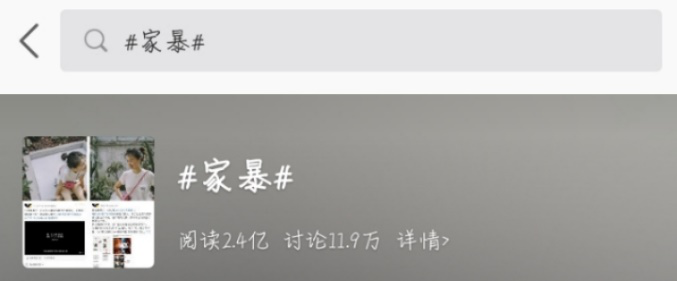 近几年来,随着新媒体的发展,越来越多的人选择在公共平台上发布对一些恶性事件的求助,而家庭暴力事件占到了很大的比例,根本原因在于中国人的传统思想认为夫妻间的事属于别人的家事,很大程度上会选择和稀泥而非解决,使得很多无路可走的人选择向大众倾诉。从微博上几个话题的热度可以看出,大众对于家庭暴力的事件其实是很关注的: