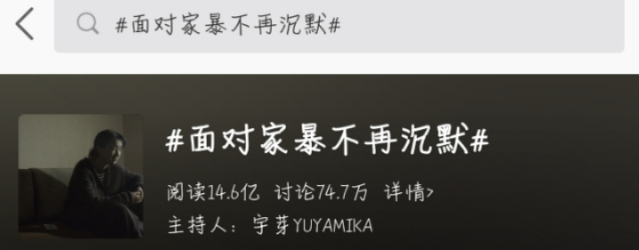 2019年11月25日,博主“宇芽YUYAMIKA”在自己的微博上发布了一则短片,公开了自己和自己丈夫的好几任前妻被家庭暴力的事实,短片中剪辑了一段其丈夫在电梯对她进行殴打的监控录像,由于事态严重,引发了广泛关注,一时间声讨者群情激愤。