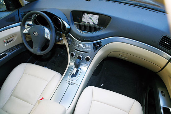 虽然内饰的设计并没有保留太多斯巴鲁原有的设计元素,但是我们却可以看到鲜明的日系风格。大曲面的中控台造型以及大量亮银色材质的应用,驰鹏显然不只想在外形上夺人眼球。中控台的设计时尚前卫,不拘一格的空调出风口与其他功能按钮相得益彰,中间位置的空调调节装置也进行了突破性的设计,黑底白字的搭配非常“酷”。上部嵌入式的多功能显示屏提供了非常合适的水平视线高度,人性化的设计延续了斯巴鲁的设计理念。全新的内饰风格中,只有筒形的运动型仪表板以及三辐式方向盘让我找到了些许熟悉的亲切感。此外,精细的内饰做工一直也是斯巴鲁的优势所在,在驰鹏身上更是得到了升华,这使得驰鹏完全具备了与欧美同档甚至更高端车型“叫板”的资本。