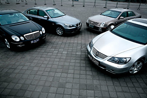 当我们把奔驰E280、宝马530Li、凯迪拉克SLS赛威和讴歌RL这四辆车摆在一起的时候,所有经过的路人都不知道我们到底在干什么。异样的眼光似乎在表达着我们这几个毛头小伙对于眼前这四辆总价值近300万元的车辆拥有权的怀疑。在他们眼里,这四辆车当中的任一款,都可以成为划分穷人和富人的标志,而显然我们看起来的确不像是有钱人。但即便是有钱人,也不见得会同时买下这四款可以说是风格迥异的车型,并且无聊地花费几天的时间去对它们进行细致的比较。只有把开车当成一种兴趣爱好,而且真正有钱到一定地步的人,才会花费大把的财力和精力把它当成一种游戏而饶有兴致地去体验。再或者,像我们这样,利用工作之便,去完成一次令人艳羡的试车游戏。当然,游戏归游戏,漫无目的的瞎玩绝不是我们的初衷,虽然很少有人能同时成为这四款车的拥有者,从游戏当中选择出一款还是比较现实的。
