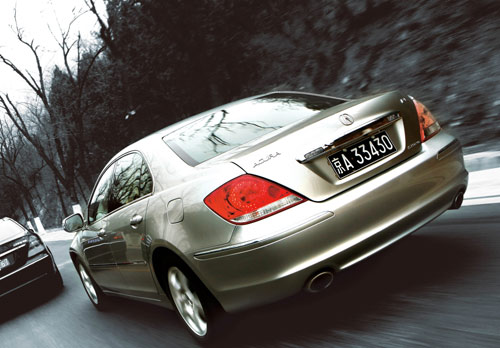 虽然定位于豪华车,但RL看起来却并不张扬,略显单薄的外表下依然保留了些日本人特有的谦逊气质。虽然在车型尺寸上并不吃亏,但视觉效果却更加紧凑。但平凡并不代表平庸,在一些外观细节的设计上,RL甚至营造出了比530Li更加具有“攻击性”的特征,比如被刻意放大尺寸的双炮筒形的前大灯,带有“ACURA”标识的黑色制动卡钳、17英寸轮毂以及车尾处粗壮的双排气管都显示出它与其他豪华车的不同,更乐意于展示它的活力。所以,RL是四款车型中在视觉效果上更加接近“B”级车的车型。