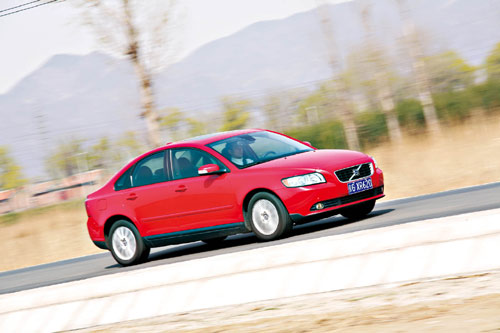 新S40的动力系统没有任何变化,依然全部采用2.5 L直列5缸发动机,T5车型同样增加了涡轮增压系统。我们试驾的是2.4i智雅版车型,由于整备质量的增加,使得加速性能受到了细微影响,但7.5 s的0~100 km/h加速时间,足以使它进入运动轿车的行列。新S40依然保持着S40车型一贯的硬朗表现,无论是方向盘、换挡杆还是各个踏板,无一例外地保留了较为沉重的操控力道,配合同样硬朗的悬架,会让驾驶者对于路面的变化感知得丝丝入扣,手脚的细微变化都会带来车辆的灵敏反应。