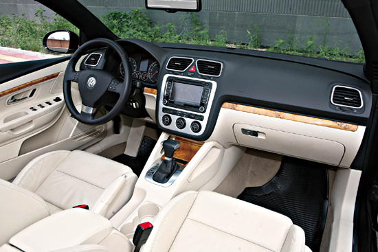 大众风格明显的EOS内饰以大量的亮色材质来增加运动气息