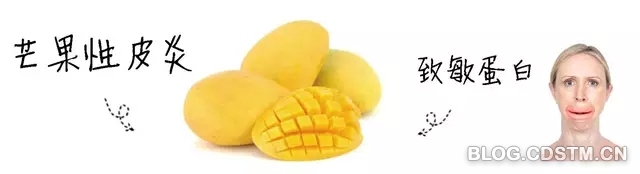 芒果含有致敏性蛋白、果胶、醛酸,会对皮肤黏膜产生刺激从而引发芒果触性皮肤炎。