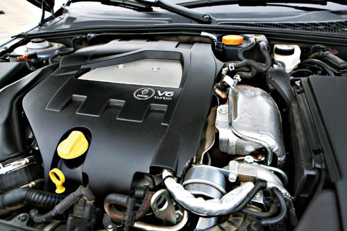 07款萨博9-3当初在国内销售的只有两款,Liner2.0t和Vector2.0TS两者除了配置上的不同之外,更为实质的差别是2.0 L四缸发动机增压方式上的不同,而这次新萨博在此基础上还新增了9-3系列中最强调性能的旗舰车型Aero 2.8TS。在强涡轮增压的作用下,2.8 L的V6发动机有着毋庸置疑的强劲动力,最大功率188 kW,发动机在1 800~5 000 r/min转速范围内都能发挥出350 N?m的峰值扭矩,一流的直线加速能力让9-3 Aero成为了得心应手的超车“利器”,6.9 s的0~100 km/h加速成绩虽然还是没能拼过宝马Z4或者奥迪TT这类跑车,但在国内销售的A级车中,敌手实在是不多。与以前试驾过的9-5 Aero2.3T相比,9-3 Aero 2.8T虽然同样采用了强涡轮增压方式,而且排量更大,但动力并不突兀,没有那种让驾驶者措手不及的猛然爆发,线性的输出更易于掌控。不过动力的充沛只是运动的一方面,当你打开发动机舱盖,会看见这款将车内填得满满当当的V6发动机被布置在前轴上,这显然会影响到车身的前后轴质量分配。虽然9-3Aero的ESP系统很高效,能对起动、制动时的点头起到很好的抑制,但在山路高速过弯时,强大的动力还会让前驱车的转向不足变得更为明显,即便有ESP和萨博独创的ReAxs后轮随转系统保驾护航,萨博9-3也称不上是那种让人放心大胆拿来攻弯的车子,强大的动力总是会让人心生畏惧。9-3系列中还有一款身份特别的Tubro X,它同样搭载的是这款2.8 L V6发动机,但却还有全轮驱动系统坐镇,我倒是认为四驱系统应该成为2.8T发动机如影随形的技术搭配,而不应该只是为特别款服务。