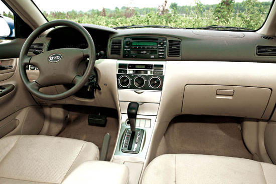 由于产品价格的不断下探,比亚迪也重新审视了自己产品的配置思路,所以这次自动版的配置都出现在最实用的地方。带有方向显示功能的车内后视镜是比亚迪的传统配置,甚至早在福莱尔时代就已配备了;透气防滑的打孔皮座椅;带有AUX接口的单碟CD;遥控钥匙和行车自动落锁功能,这些配置对于一款家庭用车来说已是绰绰有余了,只是驾驶席不能调节高度,让人有些遗憾。
