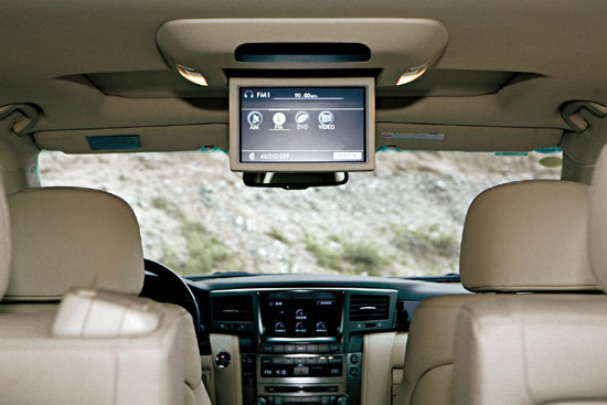 身形庞大的LX570虽也在亚洲以及欧洲等市场销售,但其主要战场还是在北美,因此它的豪华风格也体现了一些北美味。LX570的装备水平与上一代相比又有了大幅提升,19个扬声器、4区域自动空调及28个出风口,第二排的9英寸屏幕、前排中央扶手中的冰箱、电动控制的第二、三排座椅以及尾门……这些都是与LC200拉开身价的原因,装配的丰富程度甚至大大超出了你的需要,不过对于一款长度超过5m,高度近2m的全尺寸SUV来说,LX570的全方位盲区监视系统实在是太有必要了。车头及副驾驶侧的外后视镜内都有摄像头,在停车泊位或是爬陡坡的时候,显示在屏幕上的盲区图像能帮上大忙。LX570的车尾还有第三个摄像头,担任着捕捉倒车影像的任务。