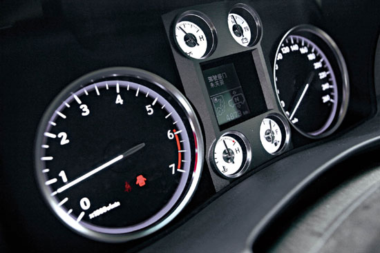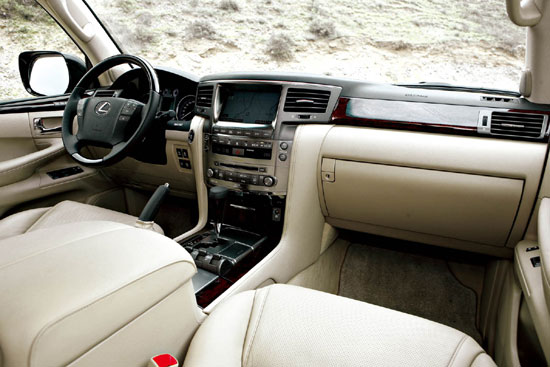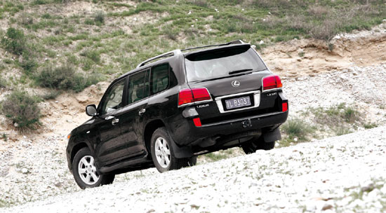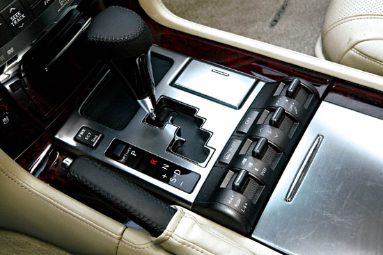 与上一代一样,雷克萨斯LX570在外观上仍不避讳与丰田LANDCRUISER的相似度,不过这次“豪华版”有了更多潜在的不同,首先在发动机排量上就压倒了LC200。其实作为SUV中的技术派,新一代LX570排量的陡升让人有些诧异,名为3UR-FE的V8发动机同样也应用在08款的丰田红杉上,最大功率比上一代LX470暴涨了近100kW,达到270kW,530N?m的最大扭矩也比上一代有了22%的增长。在油价高涨的今天,敢于把排量做得更大并以此为卖点的确是需要过硬的底气,不过想想我们时常见到的奔驰S600或是宝马760Li,雷克萨斯的这款旗舰倒也没有奢侈过了头,毕竟这是丰田全线产品中排量最大的车型。驾驶这种大排量SUV上路,油耗是个人人都会关心的问题,当我们在城市、高速以及郊外的非铺装路面上行驶了320km后,LX570行车电脑显示的每百公里平均油耗为16.4L,这应该是一个令人满意的数字。此外,LX570还有着吃苦耐劳的优点,虽然身价超过百万,但它对油品的要求并不苛刻,91#以上就能满足胃口。虽然上一代LX470的5挡变速器依然在丰田LC200那里服役,但头顶雷克萨斯光环的LX570肯定不能容忍挡位数成为比拼对手的软肋,因此6挡自动变速器也是技术升级的一个重点。