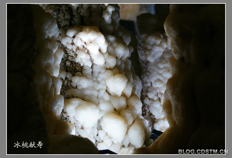 (注:洞中有“千年一吻”的景点和雪白的桃形奇石)