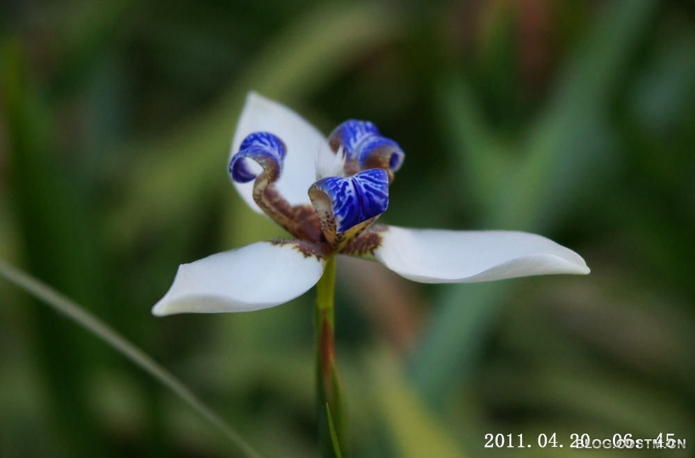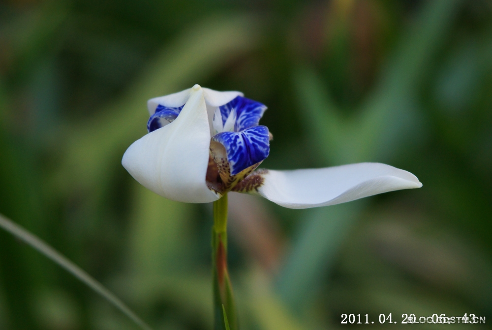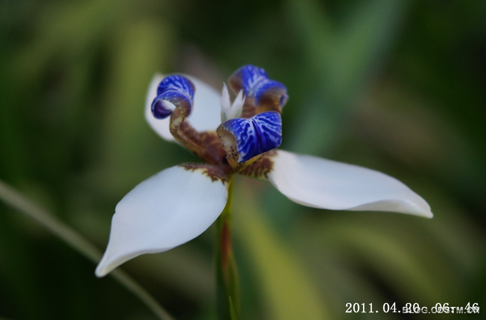 2011年4月20日晨6点钟,我到南宁市南湖拍朝霞,见路边的鸢尾正在开花,就选其中一朵,蹲在地上观察并记录它绽放的全过程。