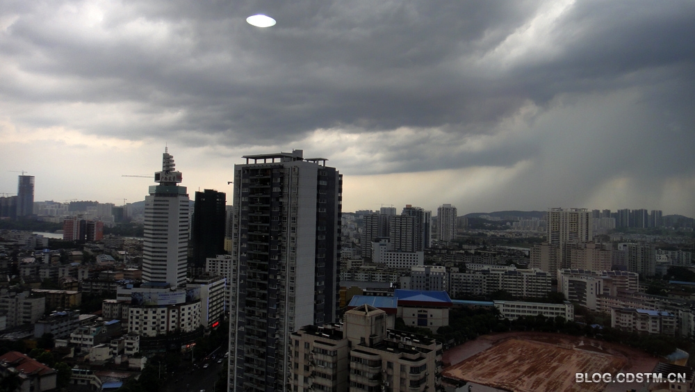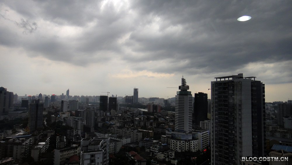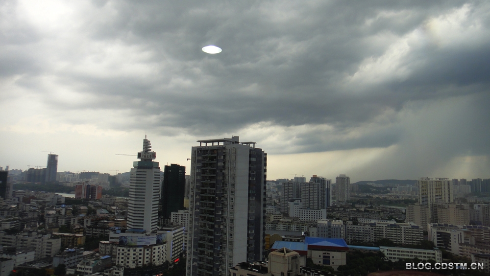 7月22日傍晚南宁市乌云密布,电闪雷鸣。我隔着窗玻拍下几张照片,放到电脑屏幕浏览,发现有个状似UFO的亮点。当时窗玻上并没有出现这一现象。有的网友看到我发在南国早报网的帖子,几乎不约而同在惊呼:UFO!我觉得不可能是UFO,但到底是什么,也不知道。
