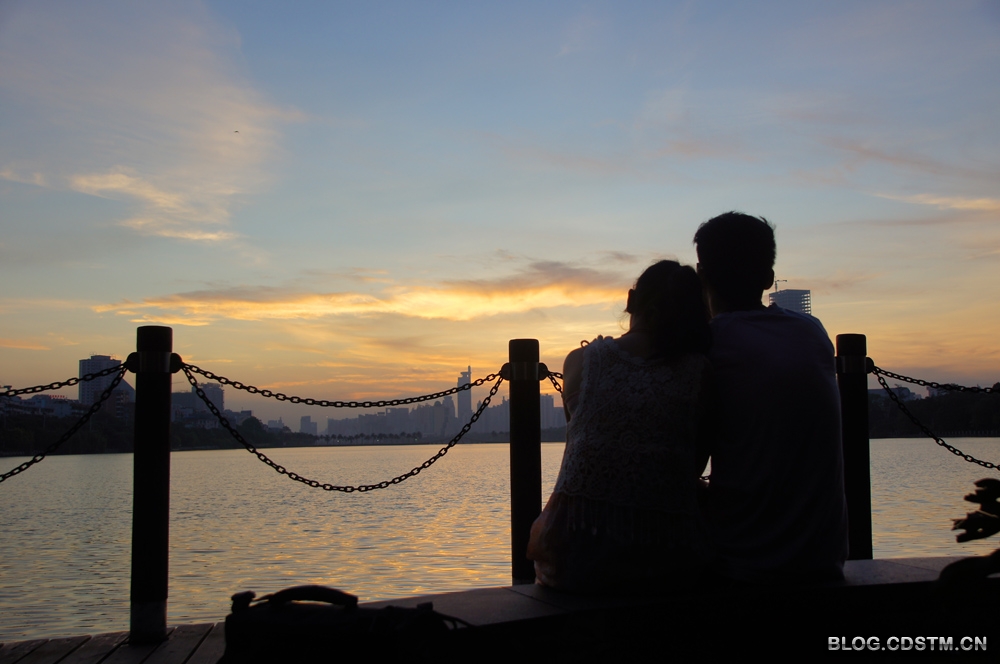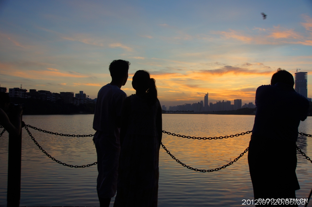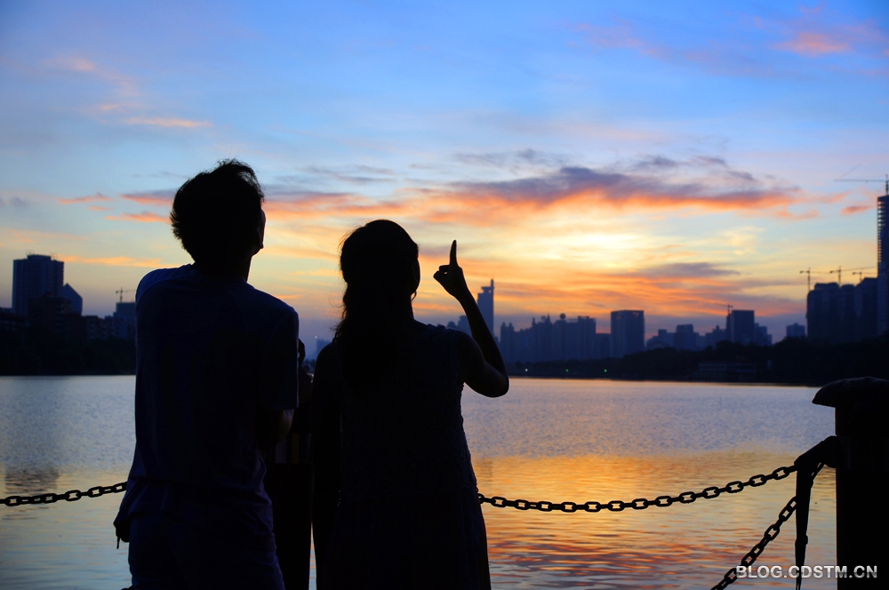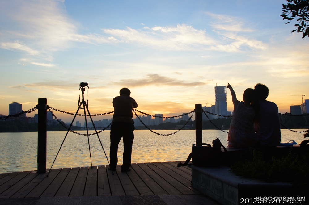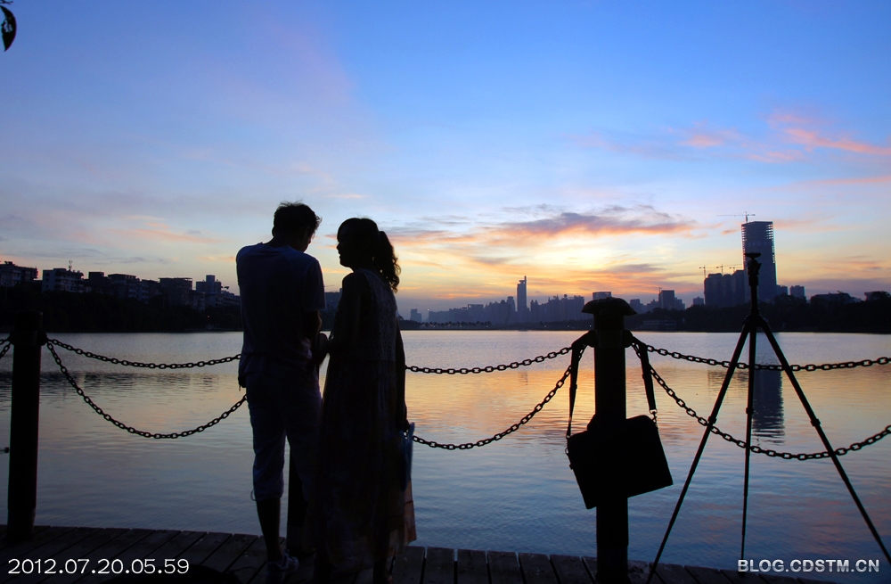 7月20日拂晓,南宁市南湖霞光灿烂,一对情侣陶醉在霞光湖色之中......这就是生活,这就是美。