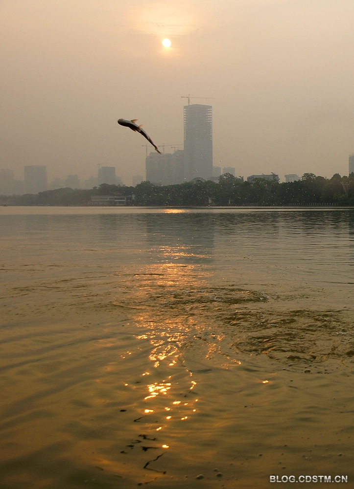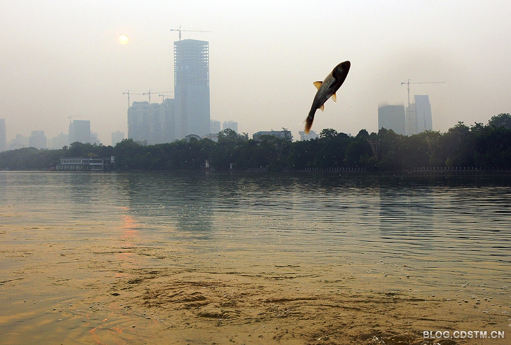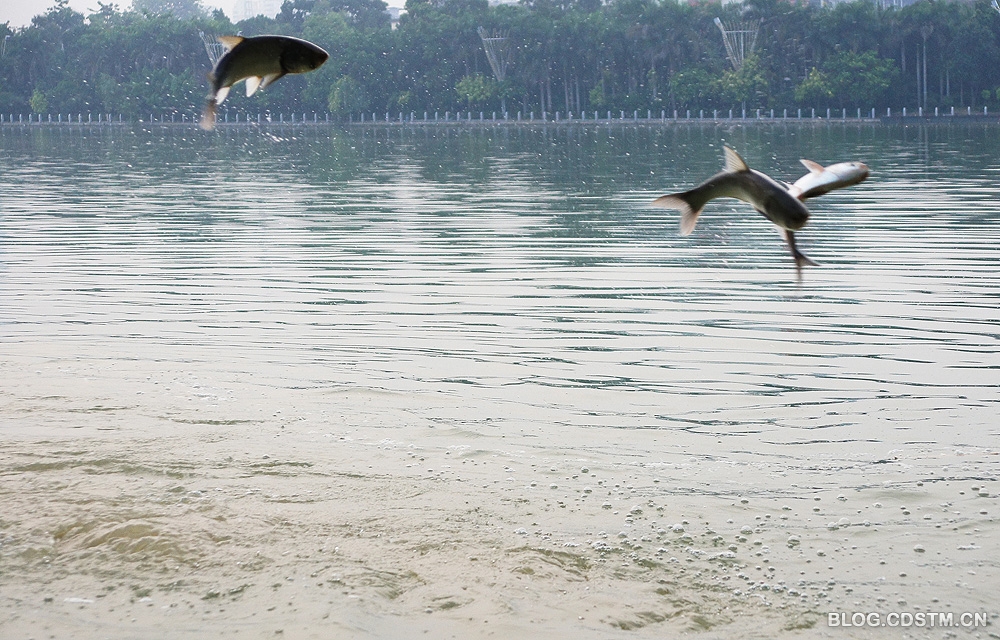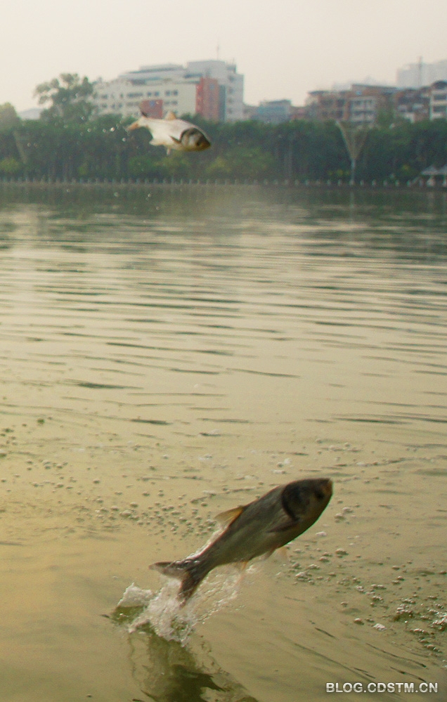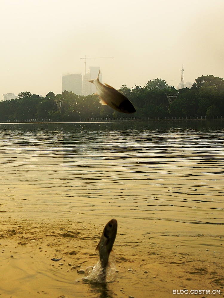 伦敦奥运会,中国跳水梦之队成员之一——南宁姑娘何姿夺得金 牌。南湖的鱼似通人性,随着邕江水的输入,纷纷跃出水面,似为在为何姿姑娘夺金欢欣鼓舞。