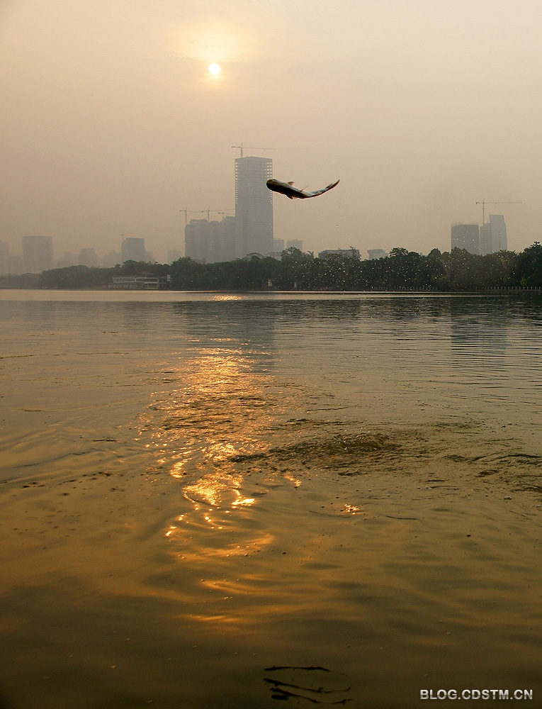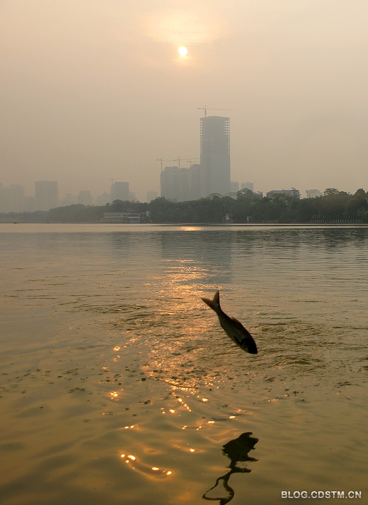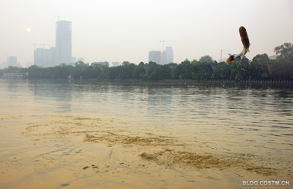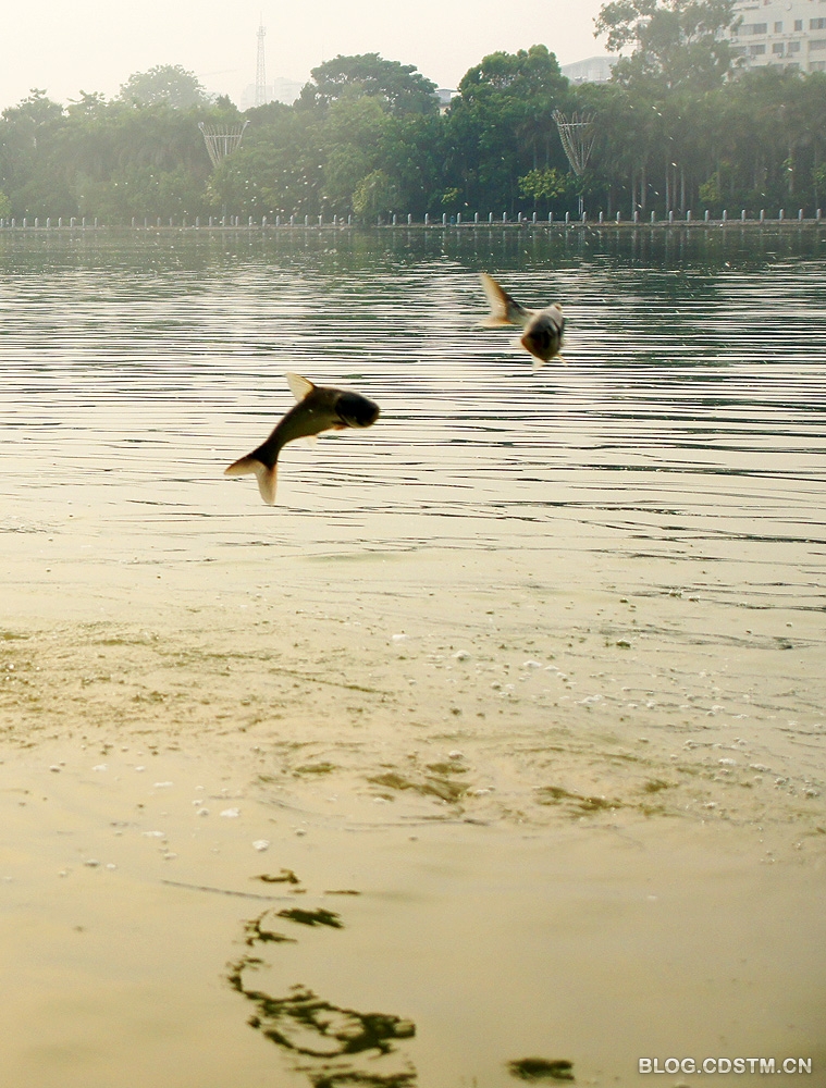 伦敦奥运会,中国跳水梦之队成员之一——南宁姑娘何姿夺得金 牌。南湖的鱼似通人性,随着邕江水的输入,纷纷跃出水面,似为在为何姿姑娘夺金欢欣鼓舞。