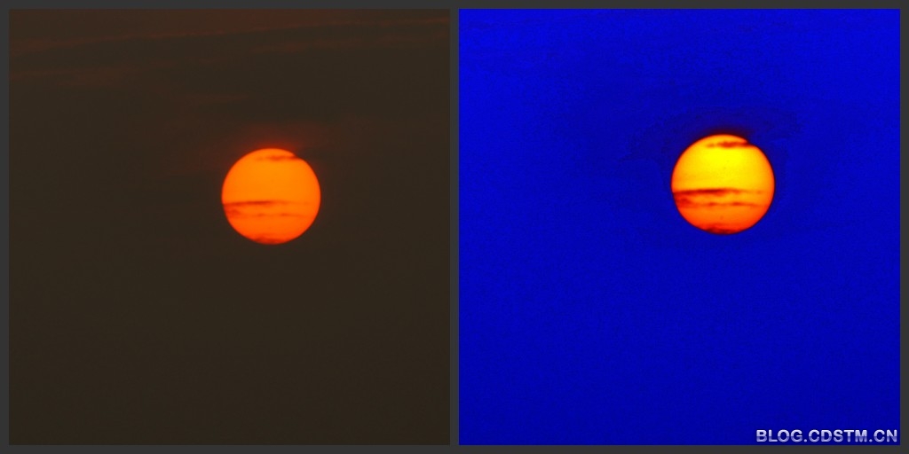 8月3月黄昏,南宁出现可爱娃娃脸谱的夕阳。