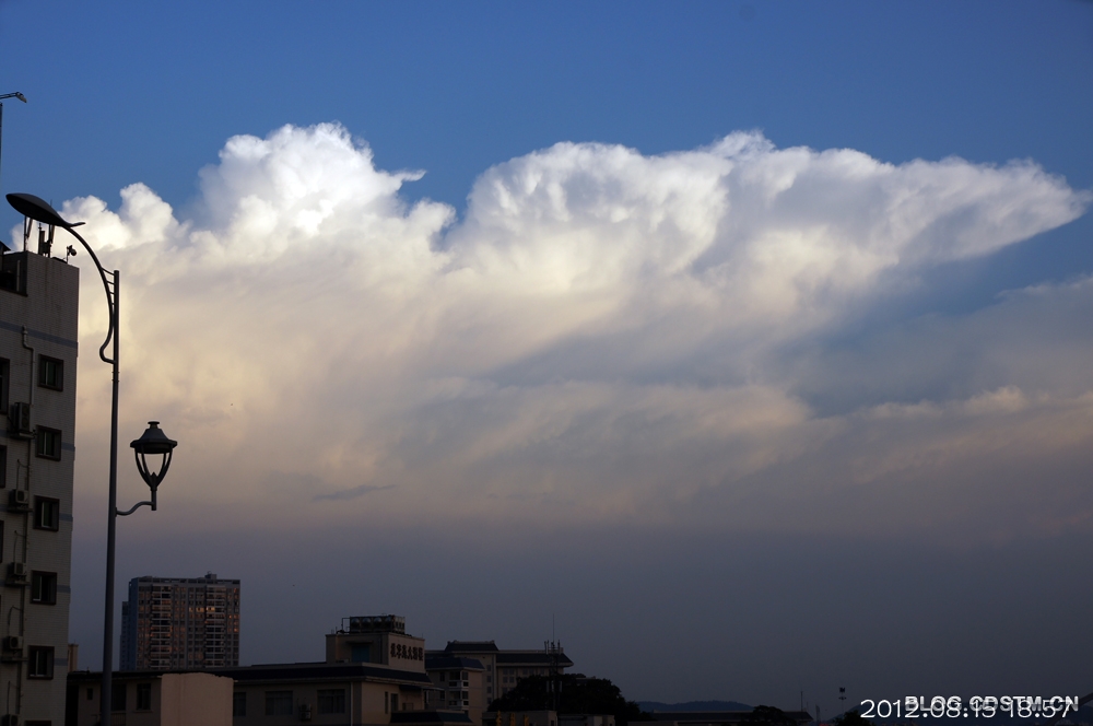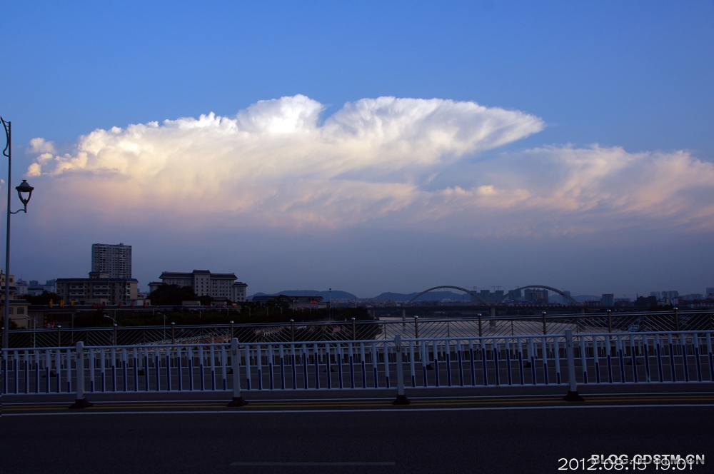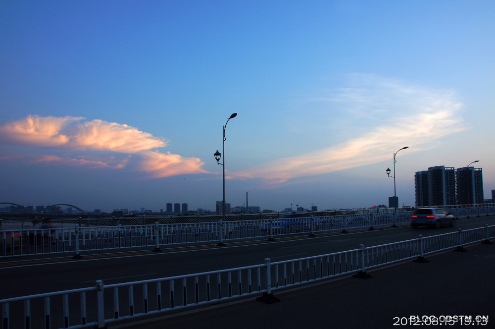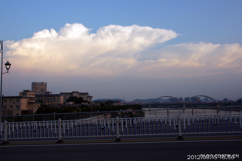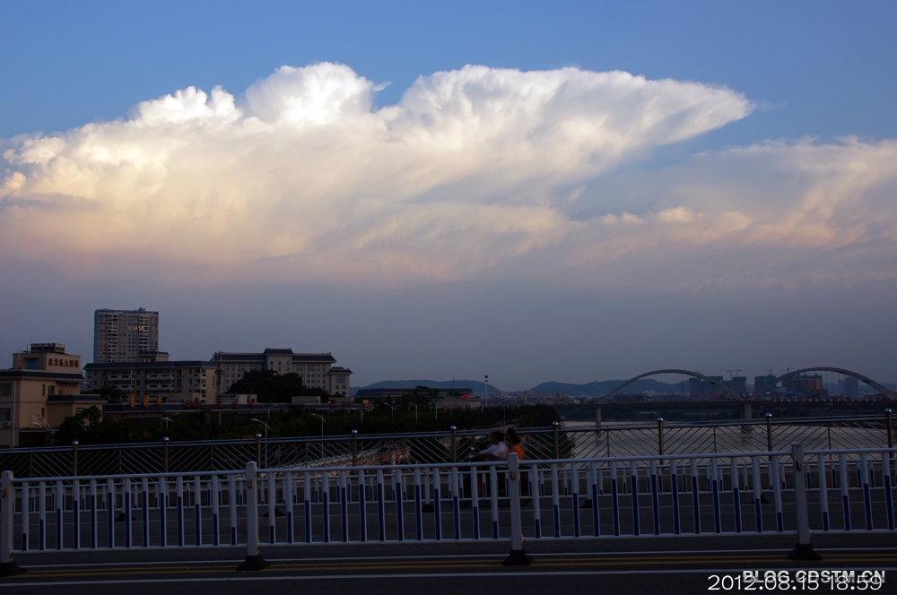 8月15日傍晚我到江边散步时发现东方有朵向南延伸、很有观赏性的白云,从18点57分开始,一直跟踪到19点23分云完全变红才收镜。晚霞的变化是缓慢的,不像朝霞那样瞬息万变。