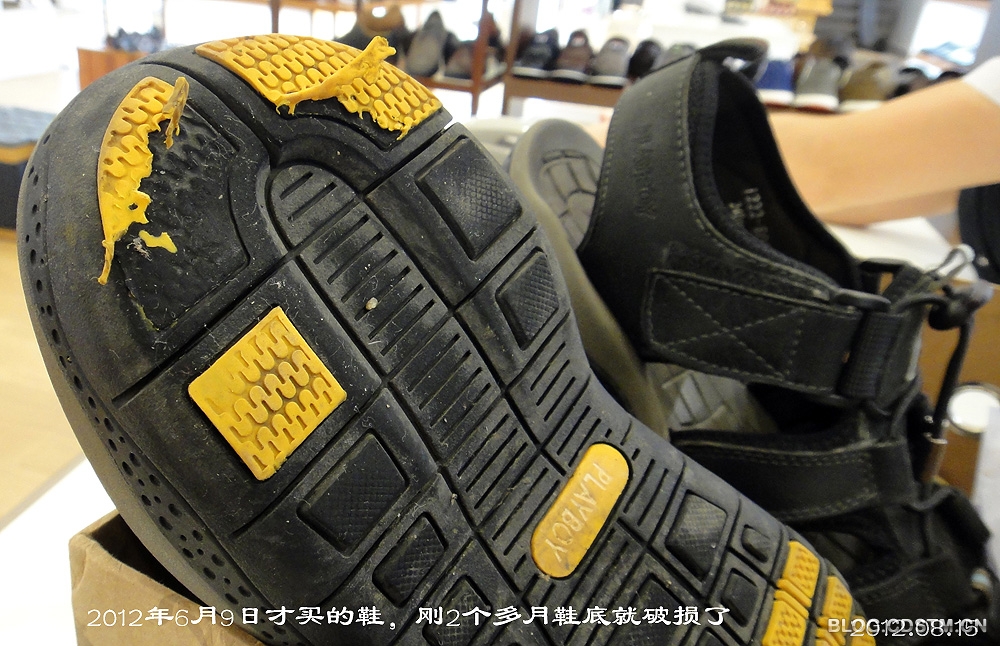 因夏季多雨,这双鞋很少穿。偶尔穿上几天,也只是在离家约100多米的单位上班时才穿,外出都换别的鞋。然而,只2个多月(实穿不到20次),有只鞋的鞋底就破损了。8月15日下午我拿鞋去商场讨个说法,服务员竟然说是正常磨损!这名牌鞋怎么这么脆弱?商家的承诺为何不算数?