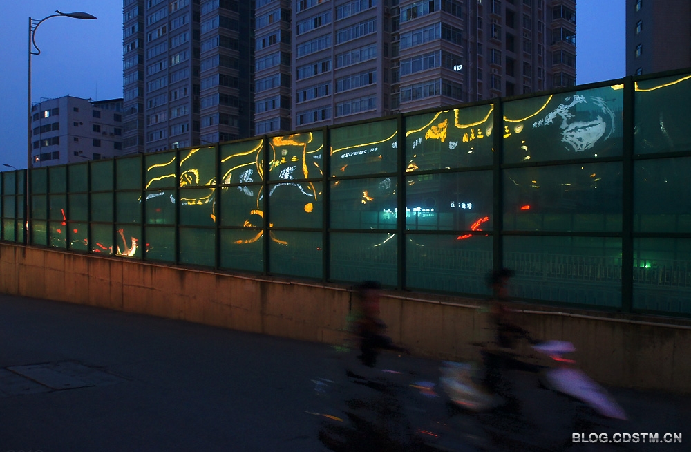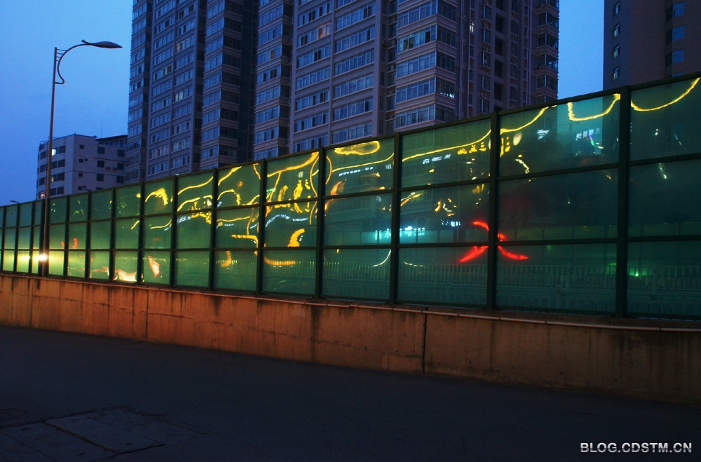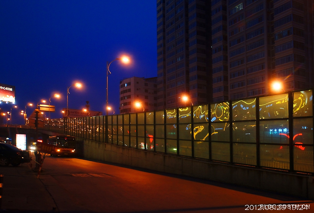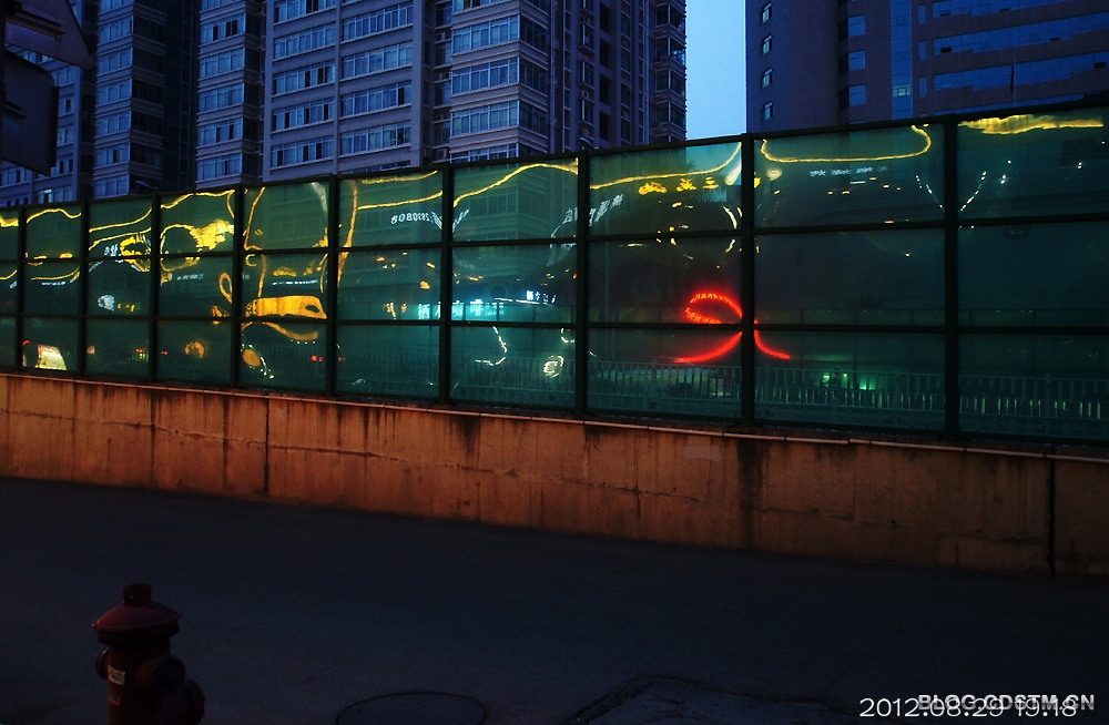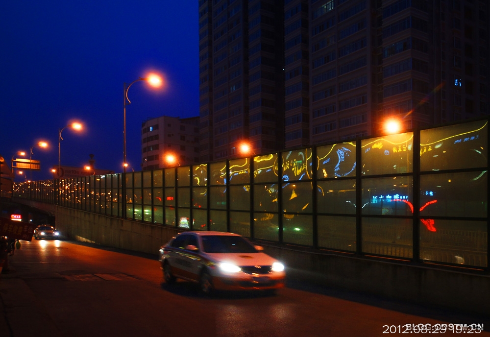 8月29日傍晚,原想到邕江边拍晚霞,谁知霾太重,没什么可拍,于是收镜回家。路经桃源大桥东时,发现玻璃围栏上出现梦幻般的灯影,构成各种各样的图案,非常奇妙。那地方人流车流频繁,不好安放脚架,便用索尼机特有的手持夜景模式拍下这组图,感光度最低3200,最高6400.但噪点并不明显。速度秒1/30,但图像不虚。