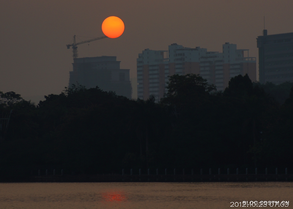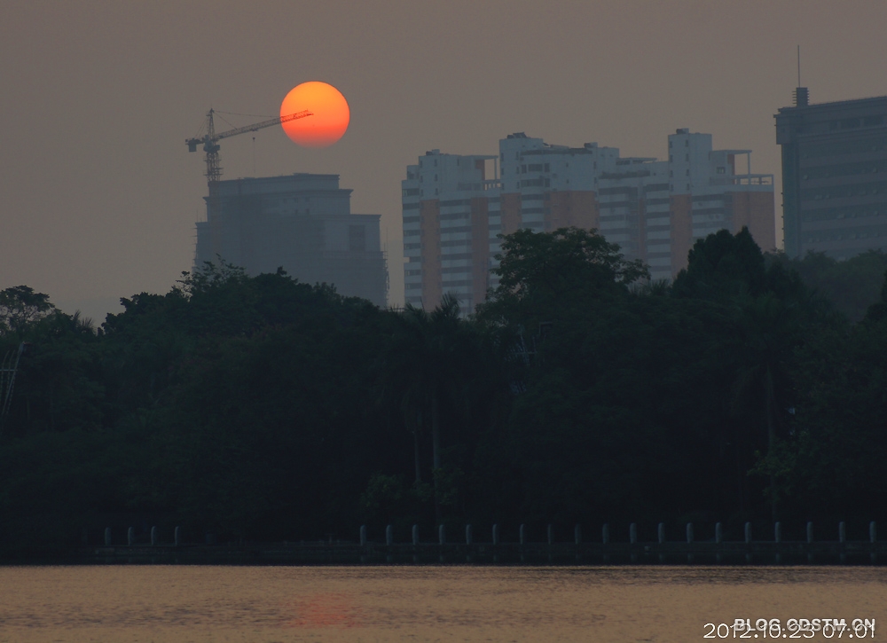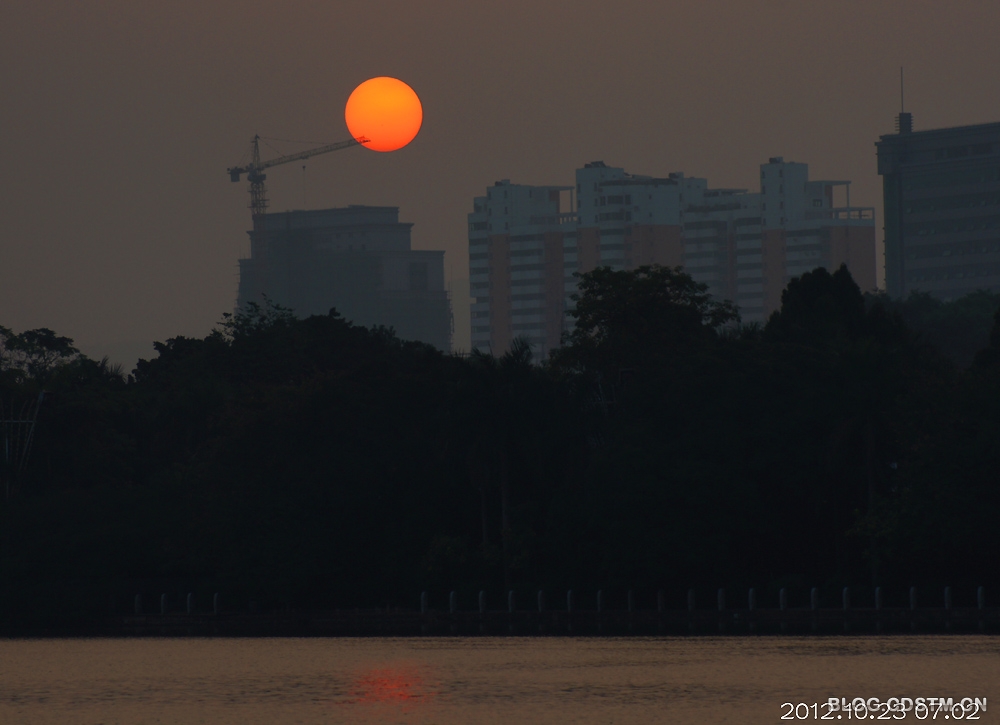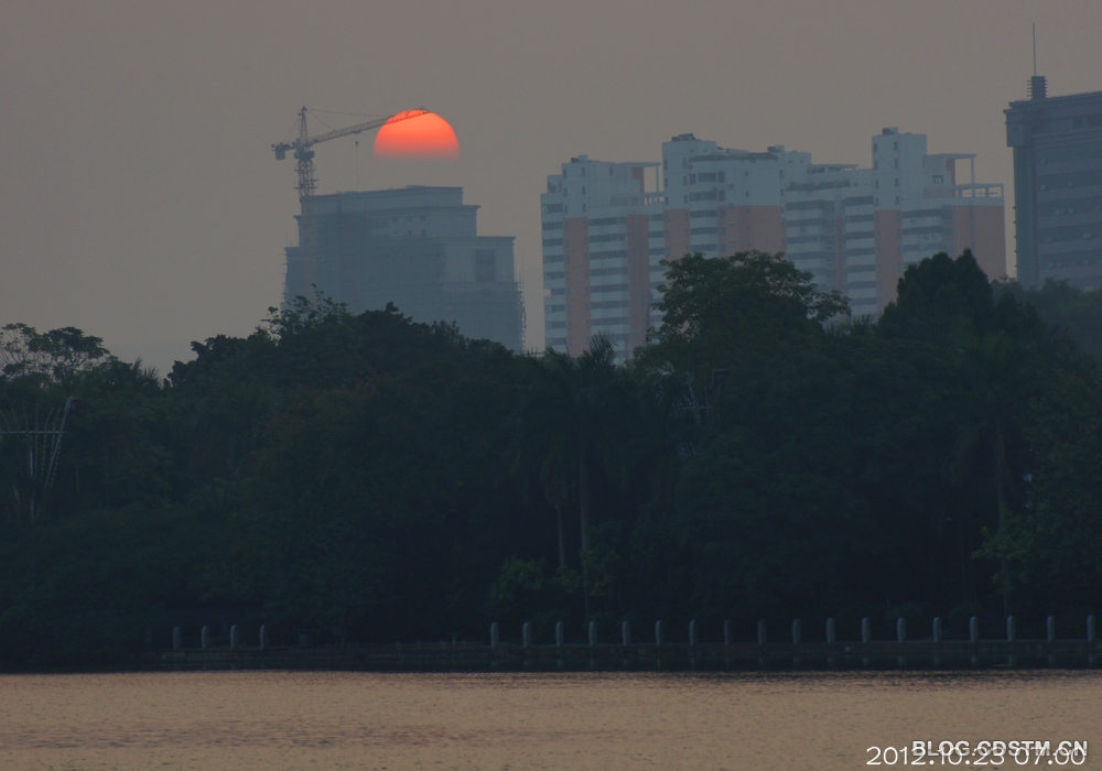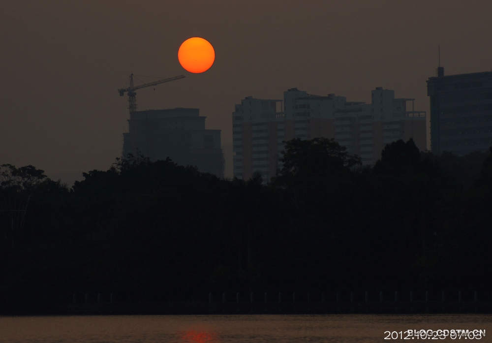 今天是重阳节,太阳似乎也有人情味,“痛饮”一番,满脸通红。谨以今天清晨拍的日出图,祝论坛上的老年朋友和年轻朋友的长辈们节日快乐,日子像这初升的太阳,节节攀高,红红火火!