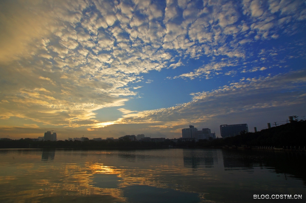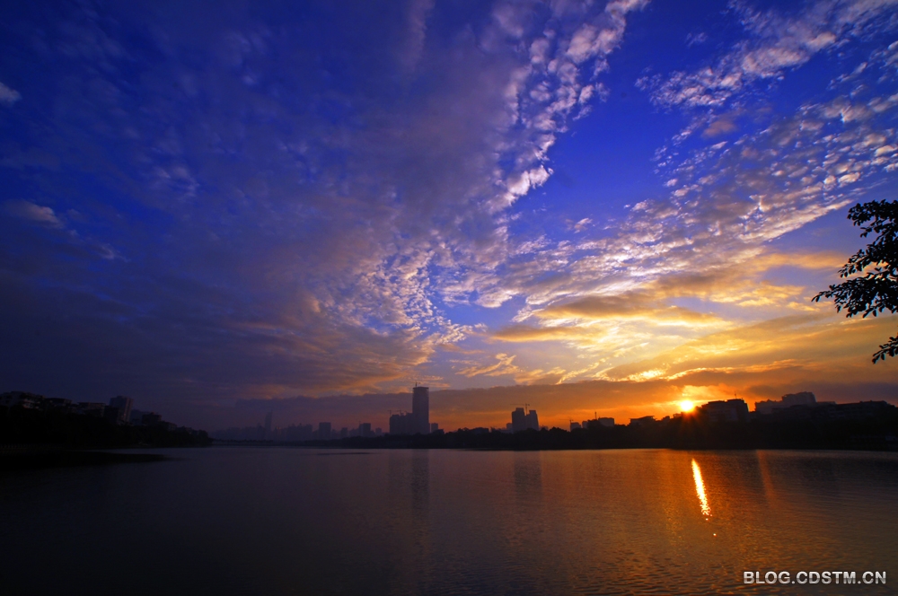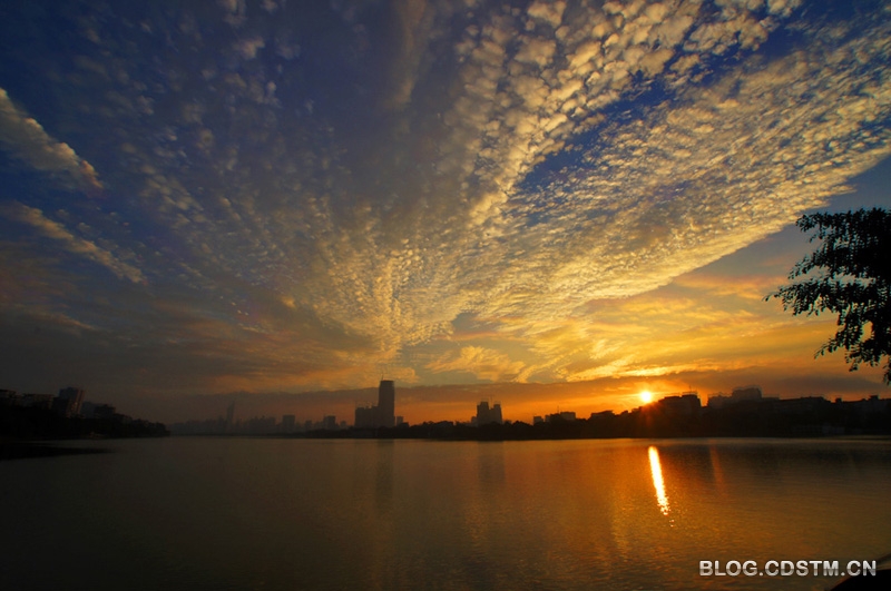 11月21日是小雪的前一天。这一天日出前,南宁市上空云厚且黑,似乎不会有朝霞出现。然而,天有不测风云,7点15分左右,随着太阳的露脸,天空的云变淡变亮,出现立冬以后难得一见的灿烂霞光。第一张图由5张片叠加而成。