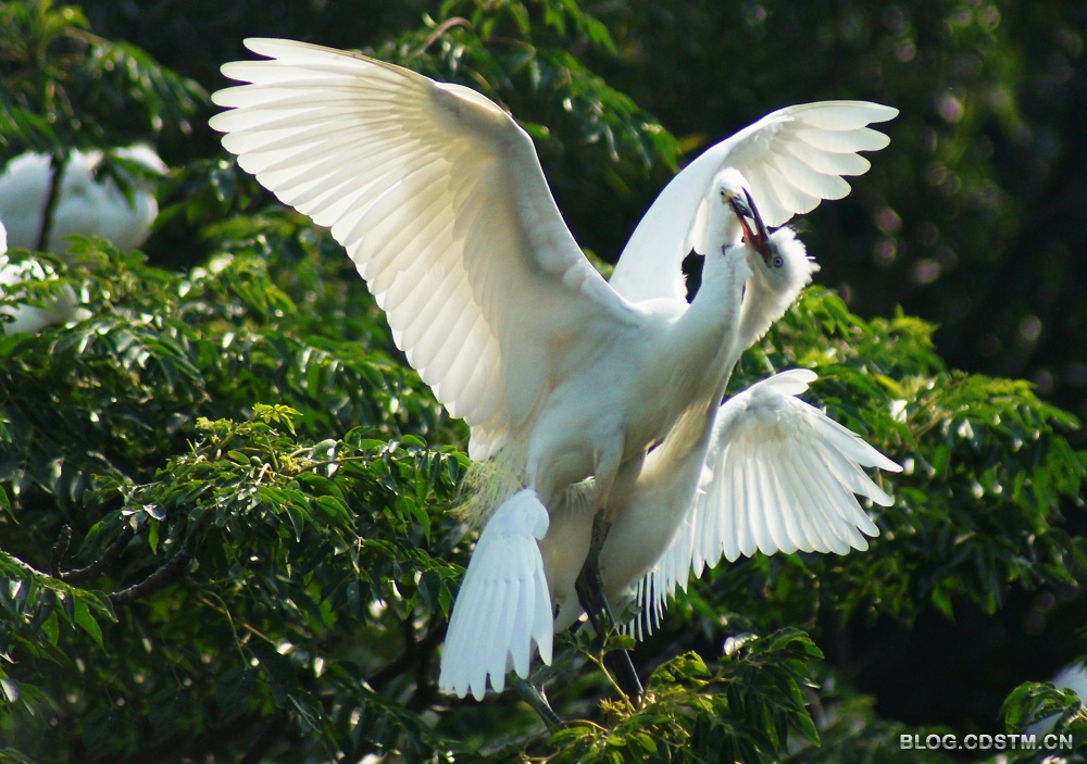 广西防城红沙村,生态环境良好,每年都有很多白鹭到那里安家。要拍白鹭,每年的4~5月是最佳时节,晴天的上午8至9点和下午5~6点时段拍的效果最好。