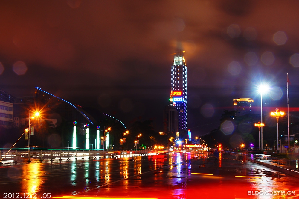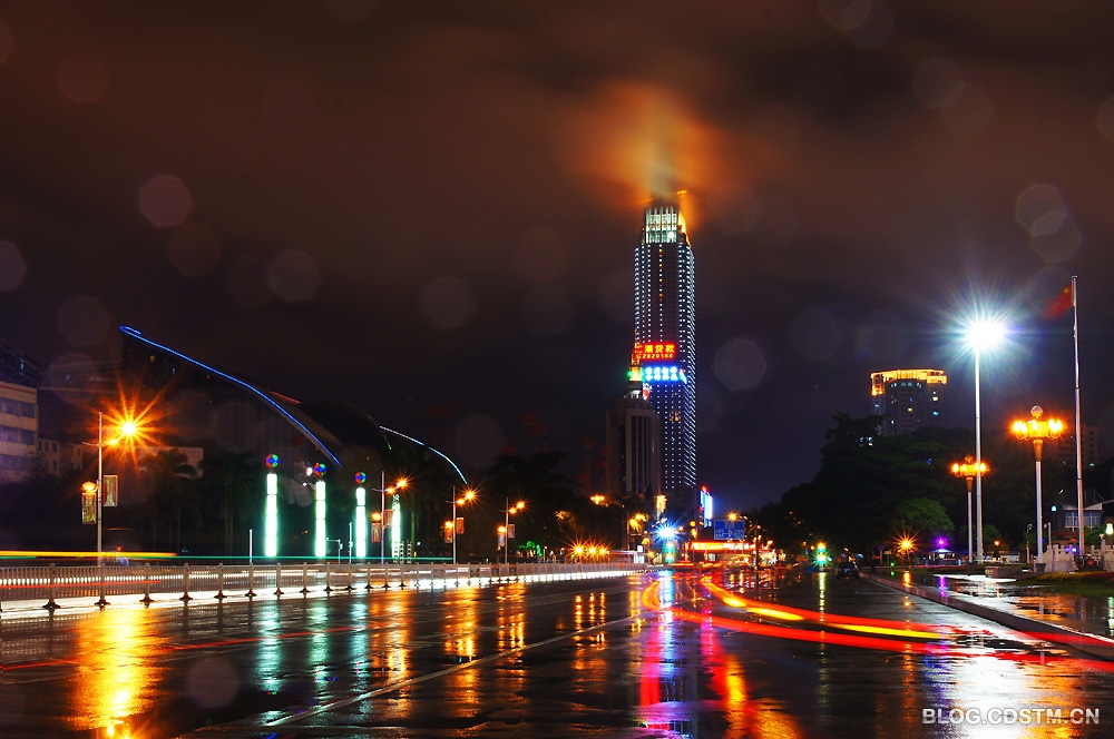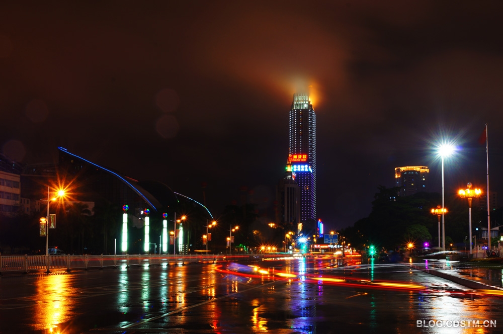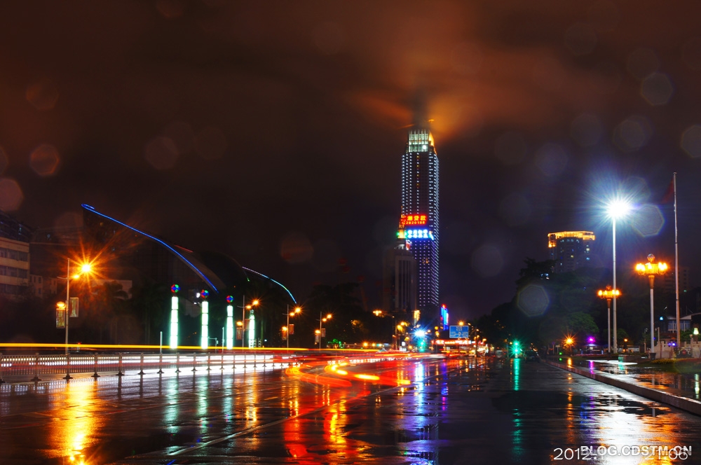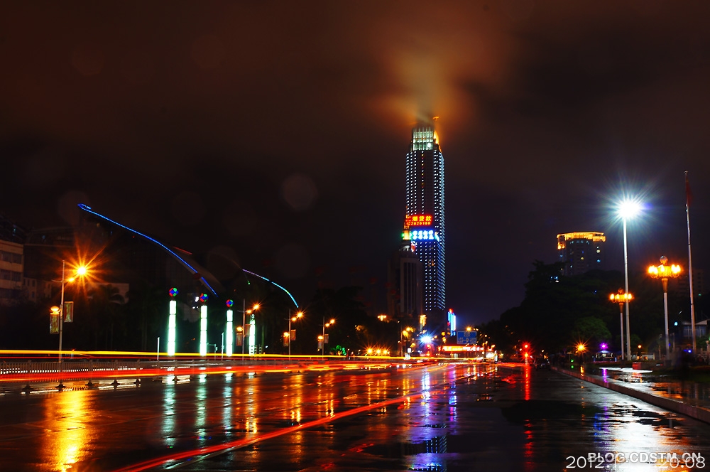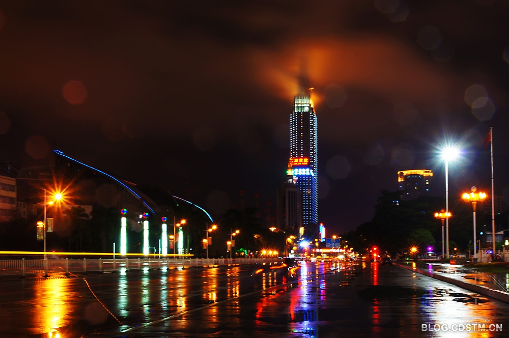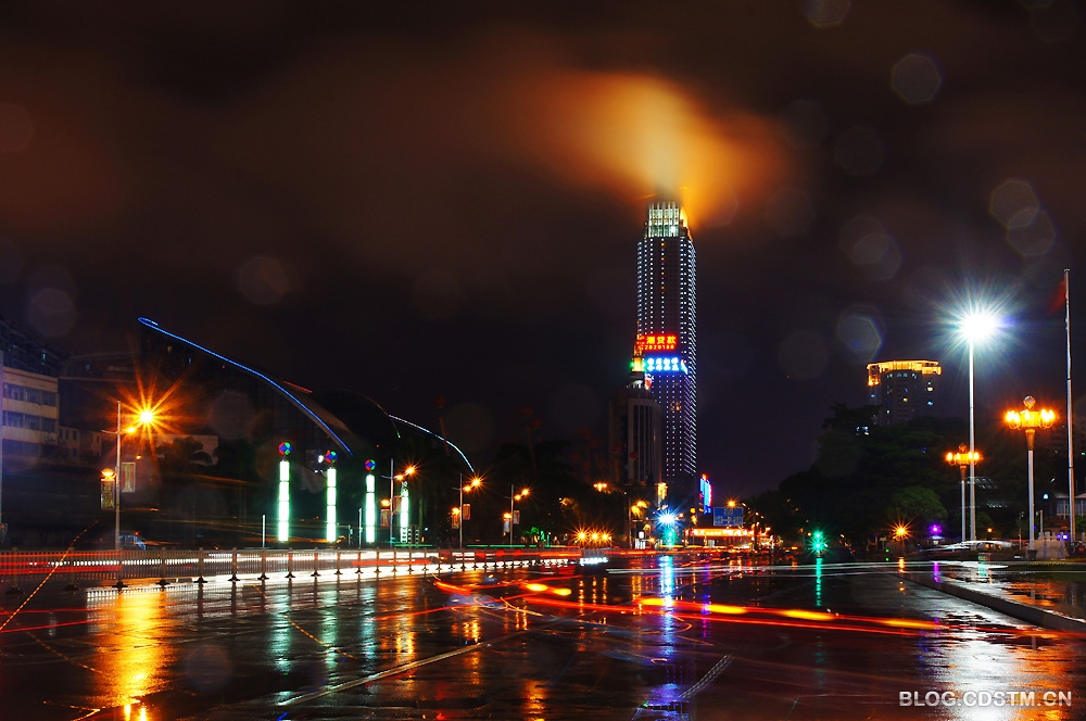 12月1日,南宁下了整整一天雨。吃过晚饭,我打伞去民族广场散步,见远处的丽原天际(南宁新地标之一)上方雨雾缭绕,在景观灯的映照下,像一团佛光,很奇妙。为不错过这一难得一见的奇观,我赶紧跑回家取相机将其定格下来。