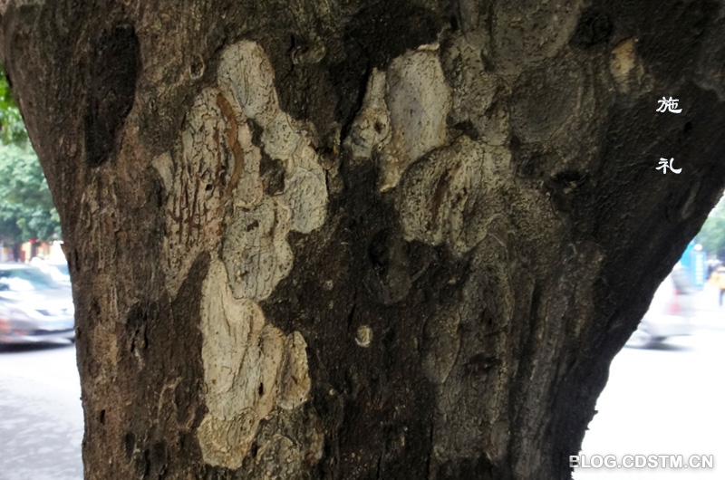 南宁市古城路的路树很特别,树皮上出现很多天然图案,有的像人,有的像动物,形神兼备,惟妙惟肖,栩栩如生。