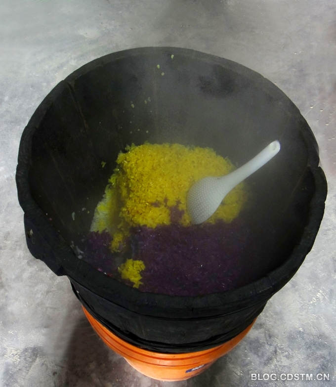 2012年12月29日至31日,我有事回老家(广西乐业县),在侄儿和表弟家用餐,吃的都是地道的原生态绿色食品,不加任何化学调味品。煮鸡加野山姜,煮鸭加香茅。主食是木桶蒸糯饭。不论是菜还是饭,都香气四溢,令胃口大开。我儿子直说好吃,在城里从没吃过味道这么好的饭菜。虽然菜式不如城里高级餐馆做的赏心悦目,但却是原汁原味,口感并不亚于宾馆名厨做的美味佳肴。