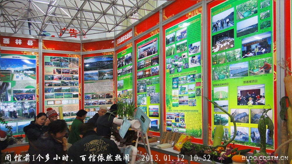 2013-01-12 22:47:322013广西科技活动周于1月12日闭幕。当天上午10点多钟,我去广西展览赶活动周的“末班车”,看到大部展馆已在收拾展品,准备撤离,显得有些空荡。只有广西农科院馆和革命老区的百色馆仍是人来人往,依然热闹。